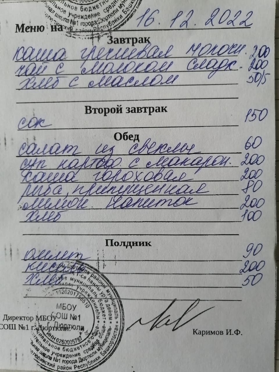 Меню на 16.12.2022
