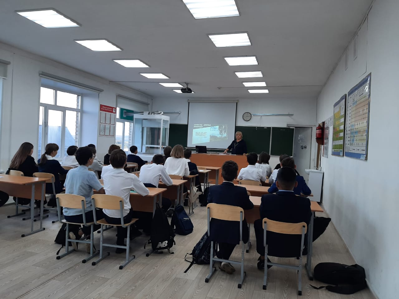 Учителем химии и биологии проведен Всероссийский урока «Эколята – молодые защитники природы» в 7б и 11 классе. Цель урока – экологическое просвещение обучающихся, формирование ответственного экологического поведения, повышение естественнонаучной грамотности. Для 7б класса была выбрана тема "Туристы - друзья природы", 11 класс тема урока "Законы экологии". Учащиеся 7б класса узнали такие понятия, как экотуризм. Данный урок направлен на то, чтобы закрепить основные экологические понятия и познакомить школьников с понятием экологического туризма, разобраться, в