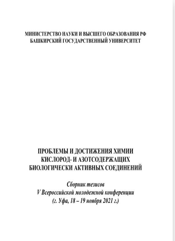 Приняли участие в V Всероссийская молодежная конференция "Проблемы и достижения химии кислород и азотсодержащих биологически активных соединений" (в заочном формате) в Башкирском государственном университете.