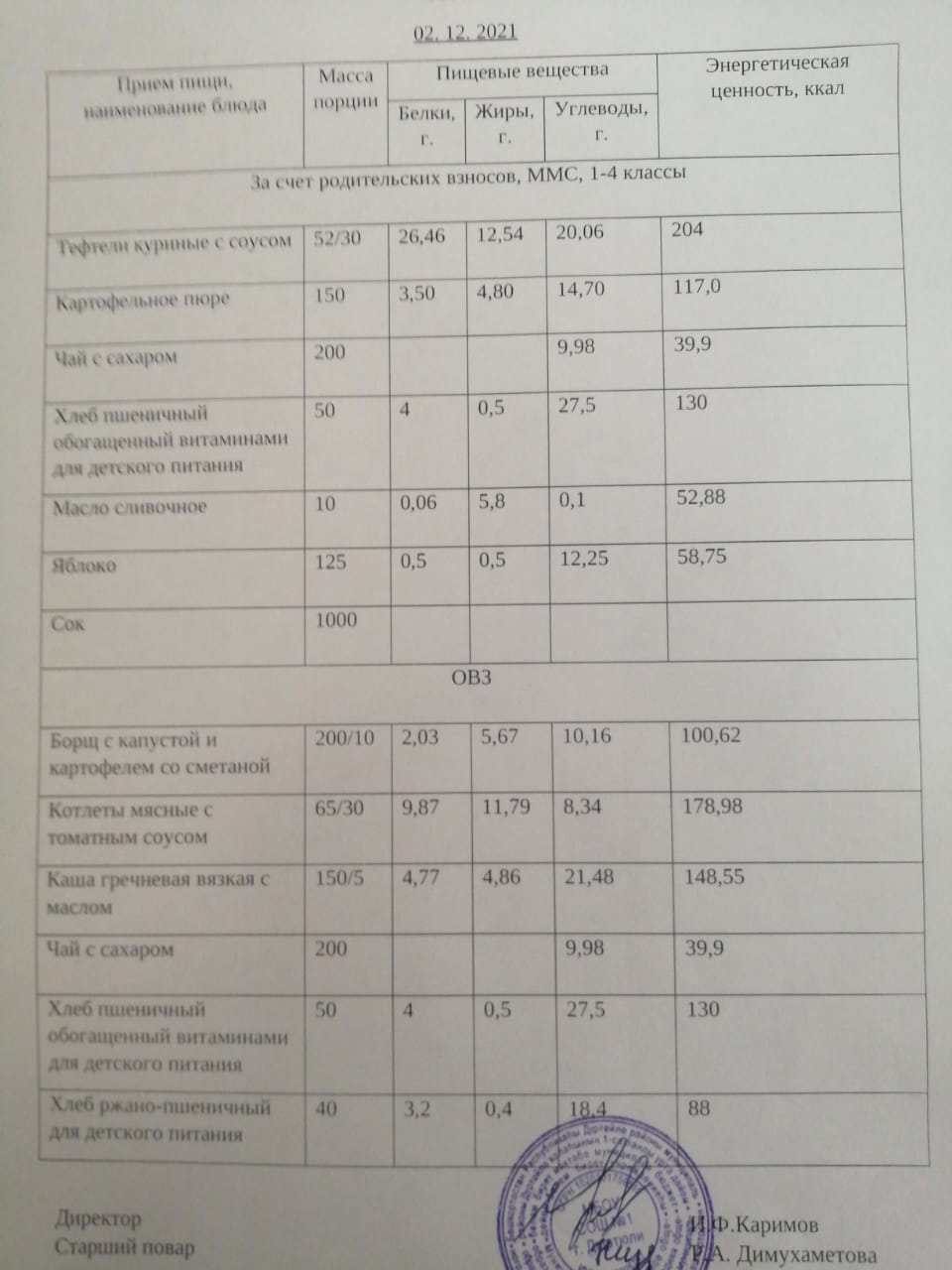 (Фото рациона на 03.12.2021)