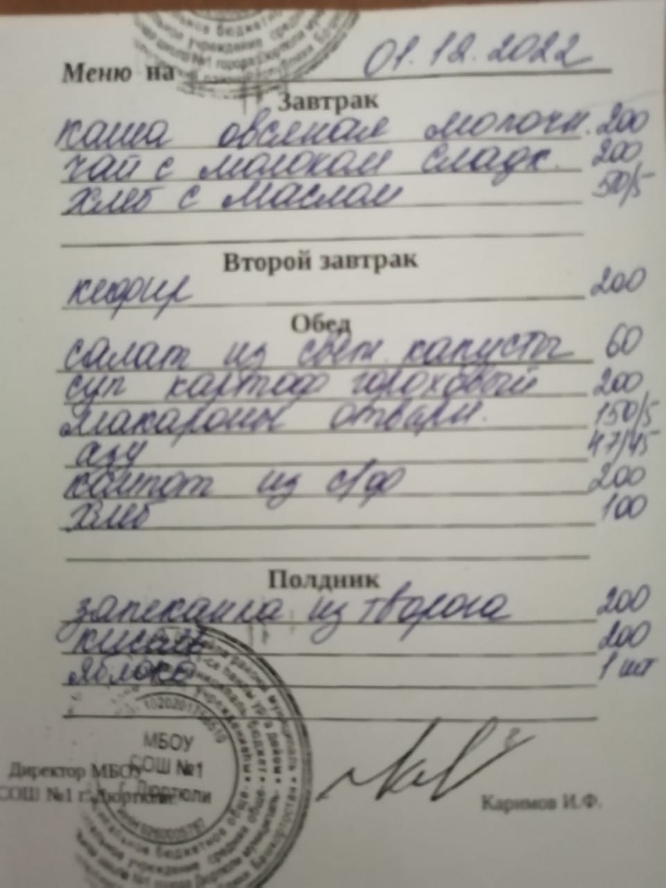 Меню на 01.12.2022
