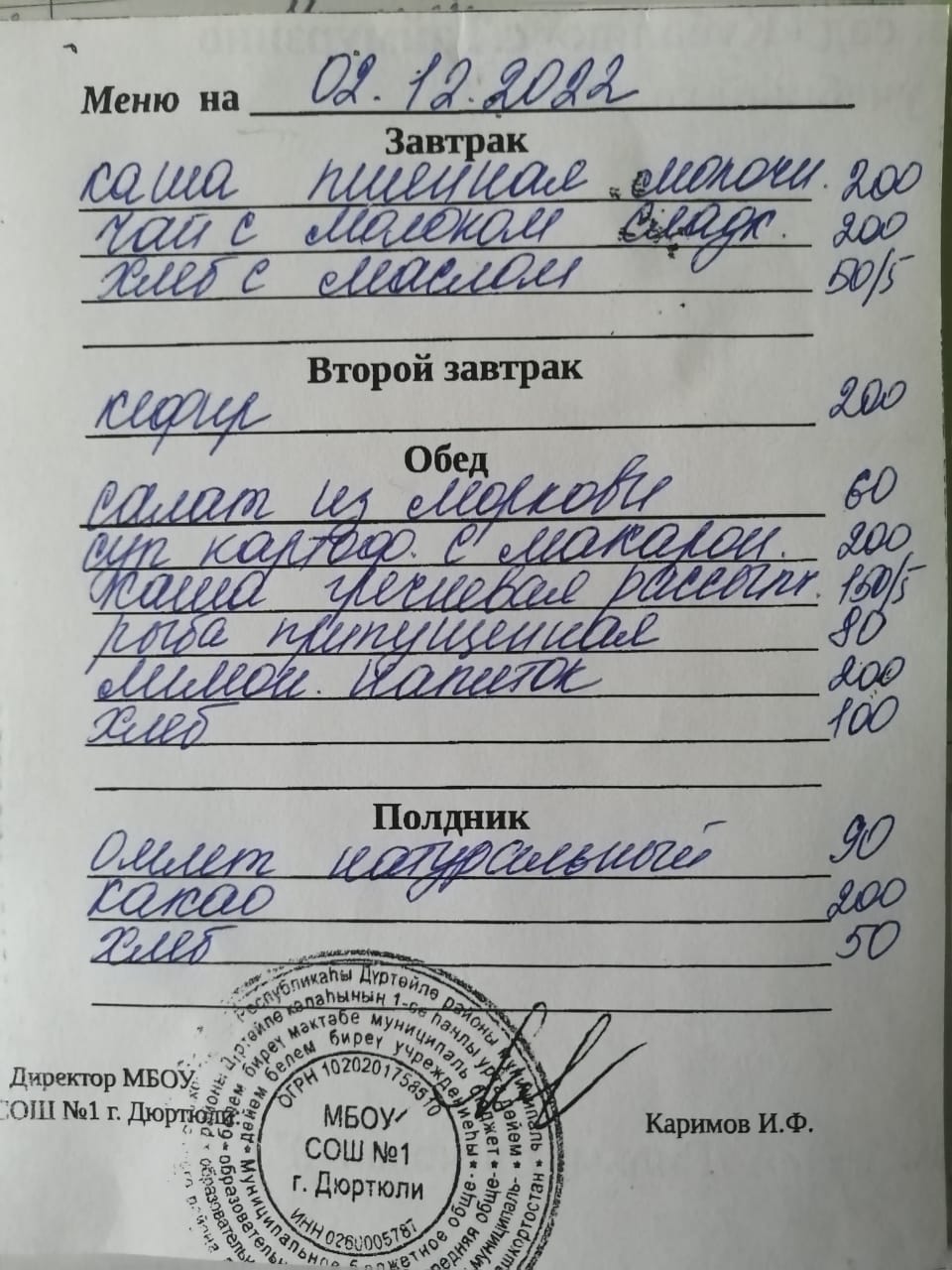 Меню на 02.12.2022