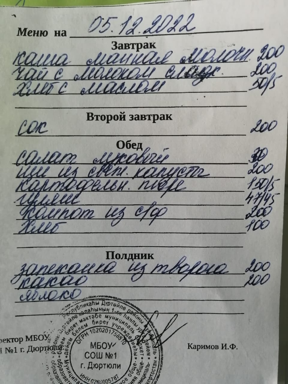Фото рациона на 05.12.2022