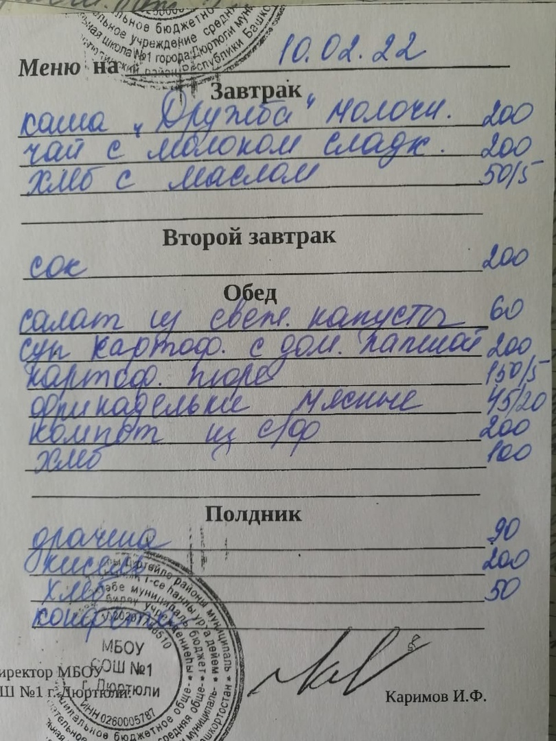 Фото рациона на 10.02.2022