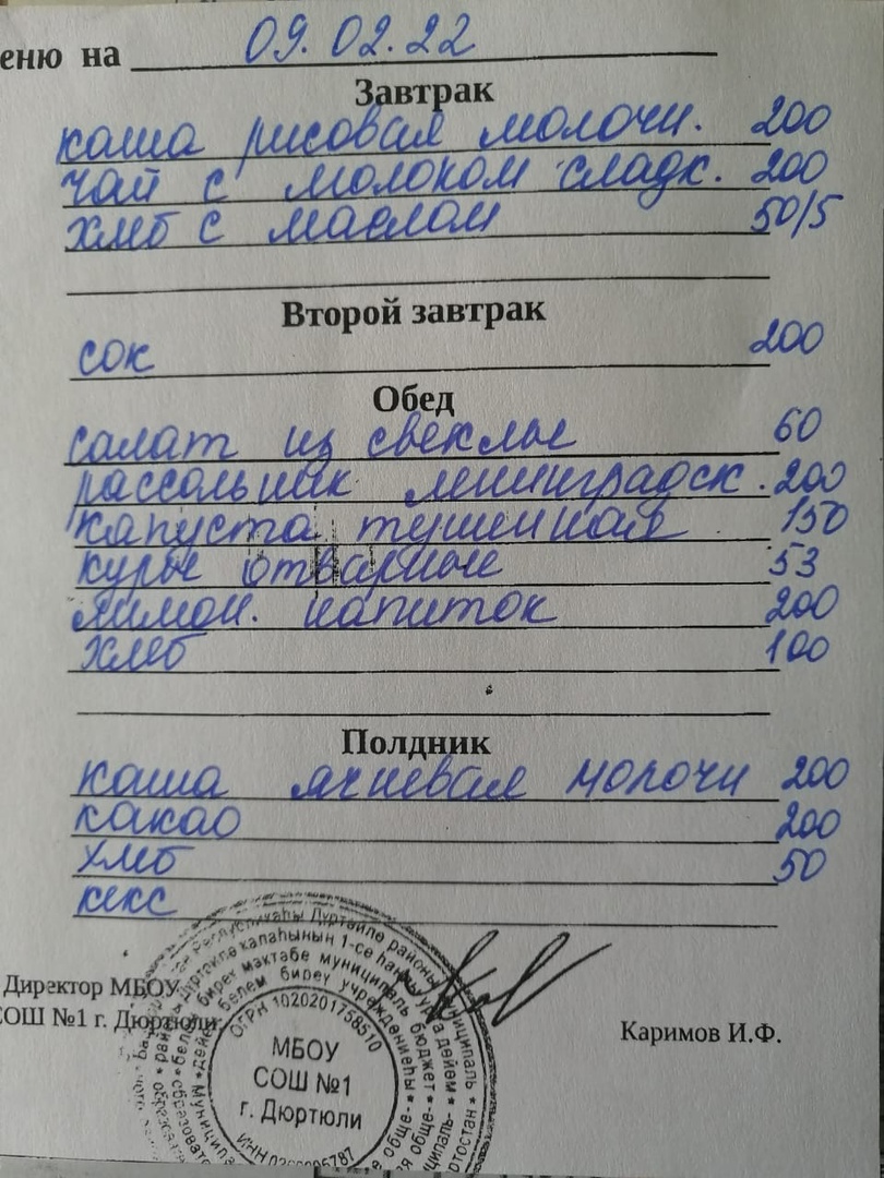 Фото рациона на 09.02.2022