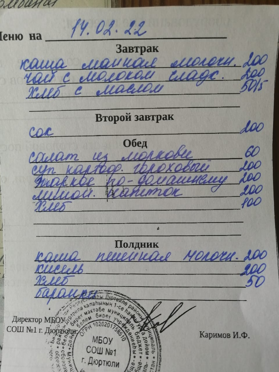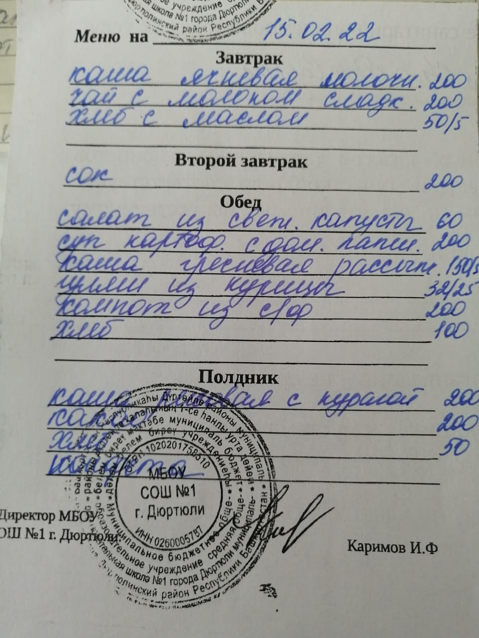 Фото рациона на 11.02.2022