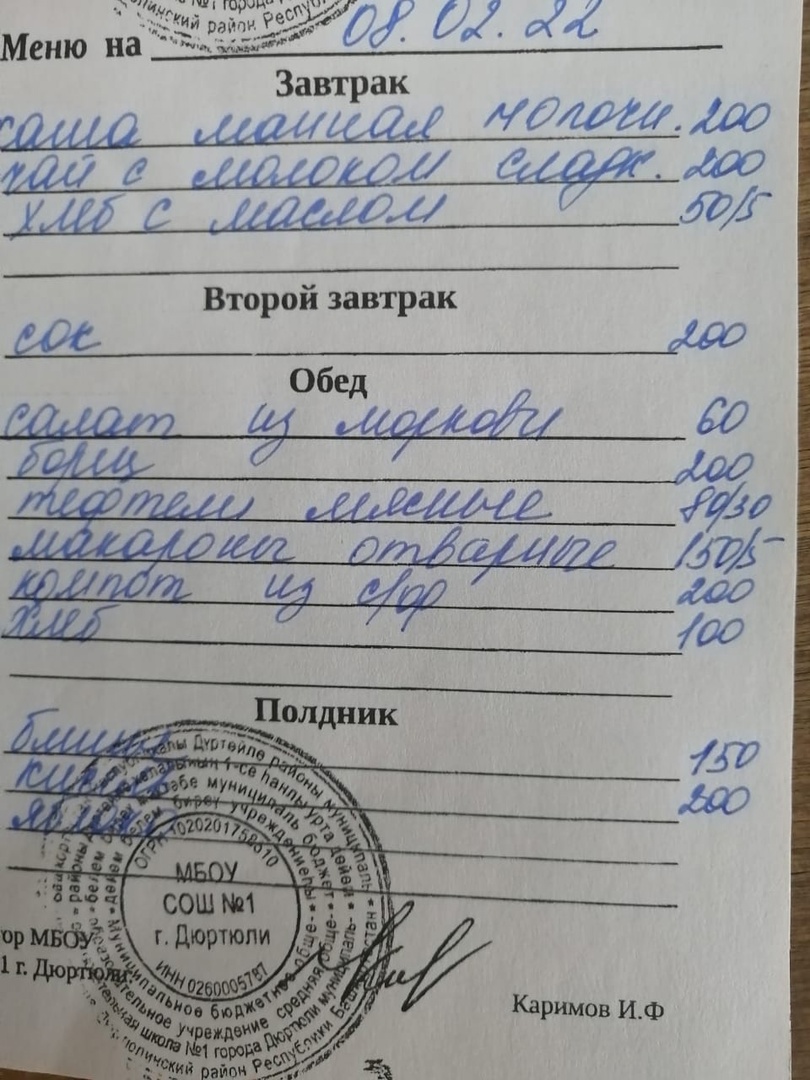 Фото рациона на 08.02.2022