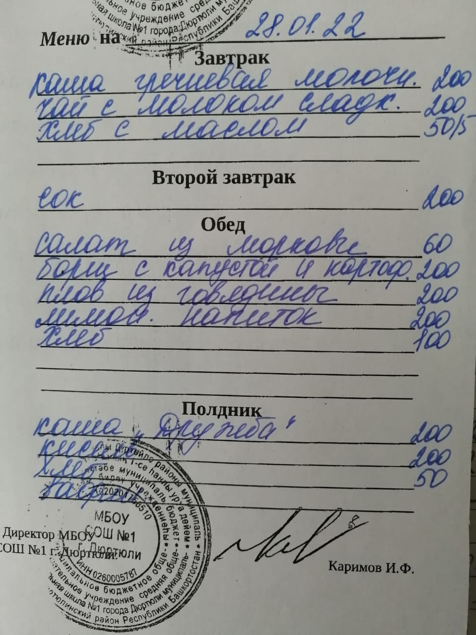 Меню на 28.01.2022