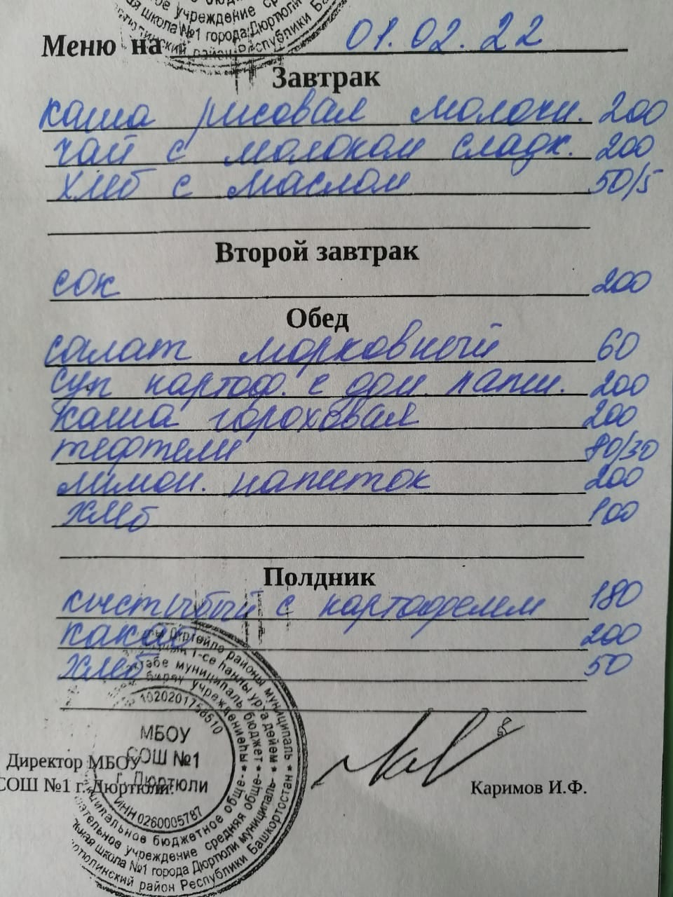 Меню на 01.02.2022