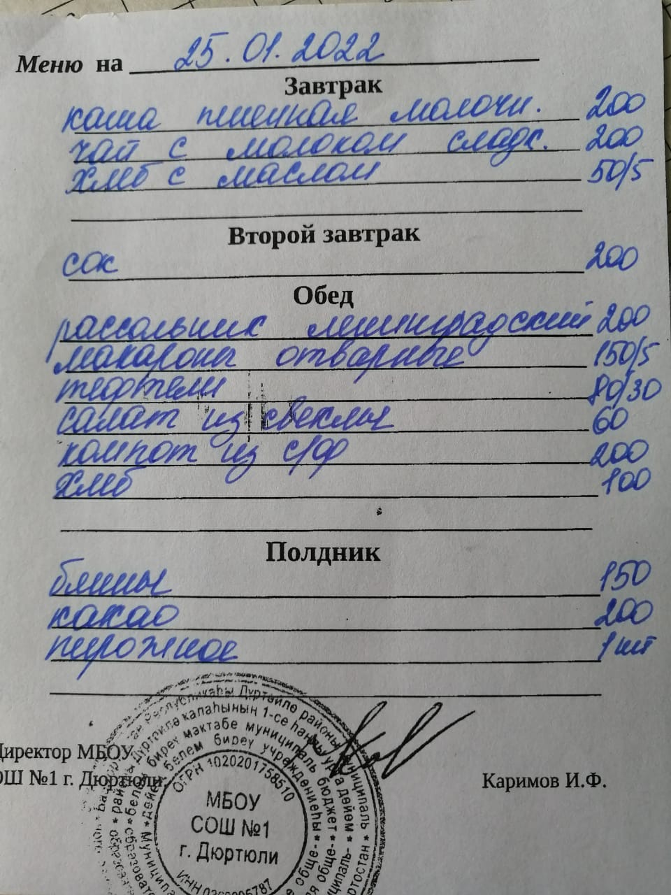 Меню на 25.01.2022