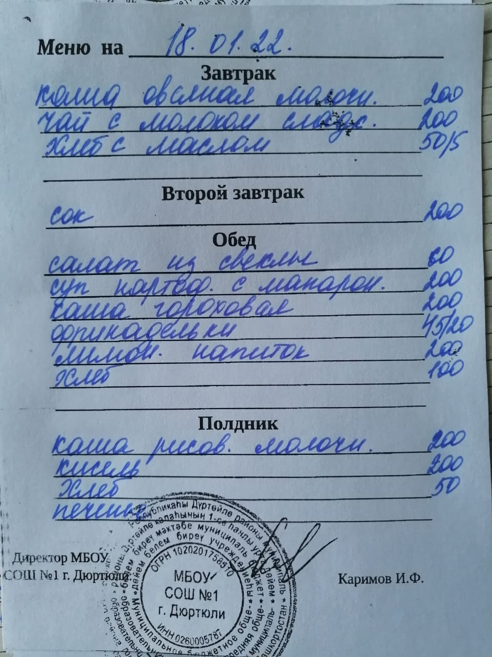 Меню на 18.01.2022