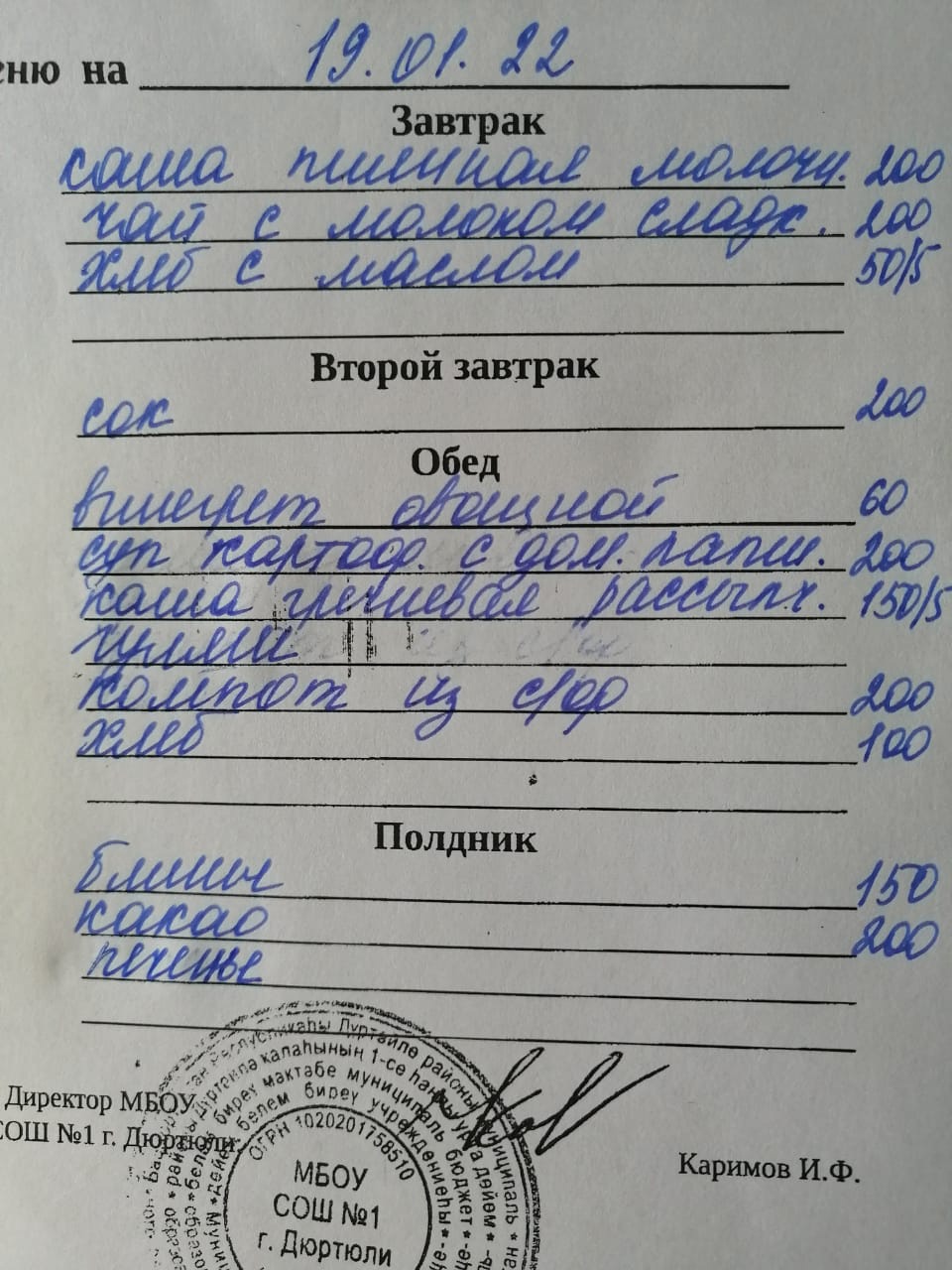 Фото рациона на 19.01.2022