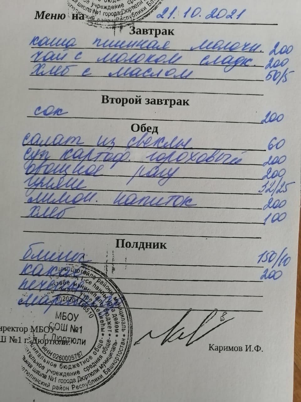 Меню на 21.10.2021