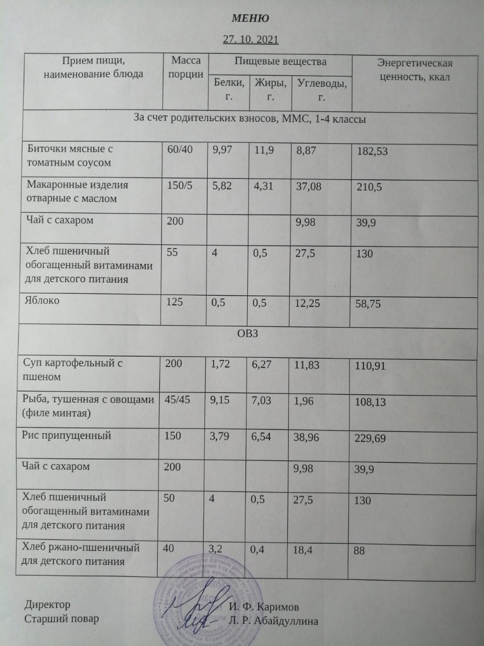 Меню на 27.10.2021