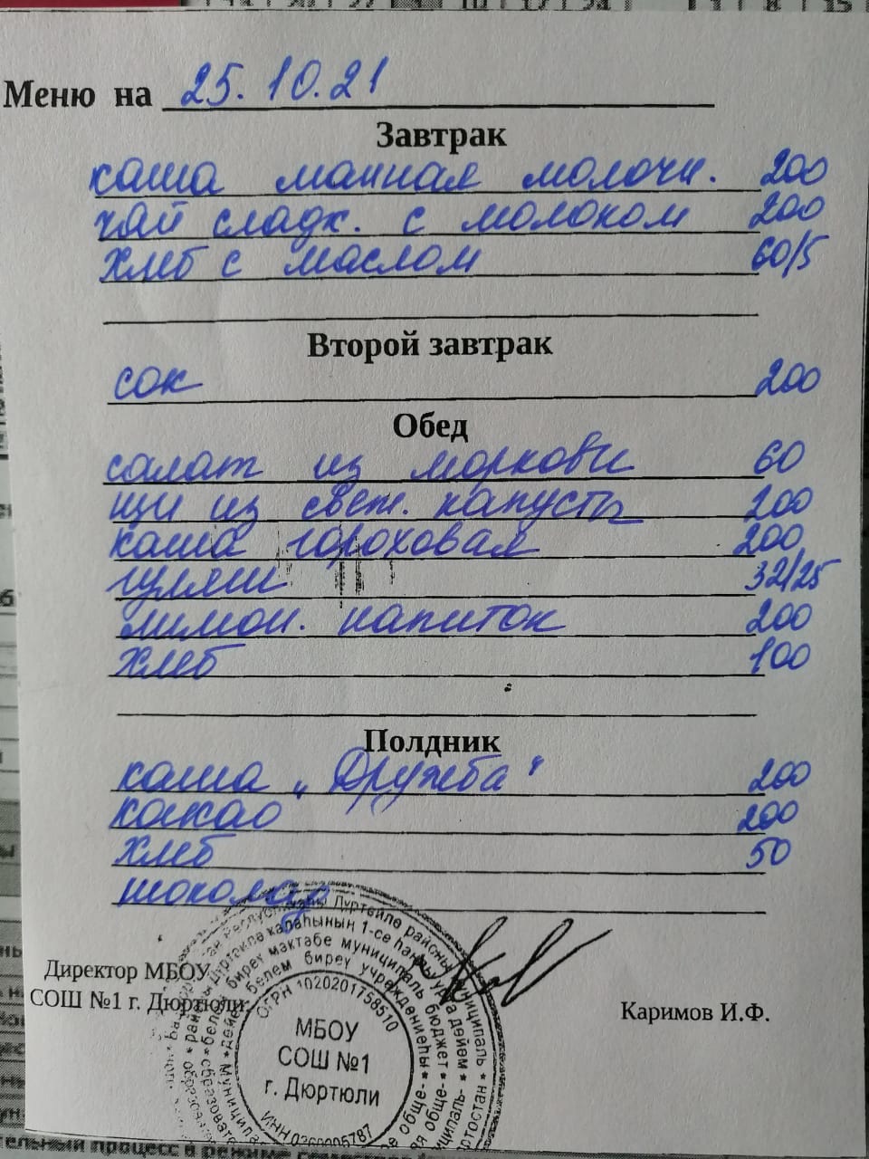 Меню на 25.10.2021