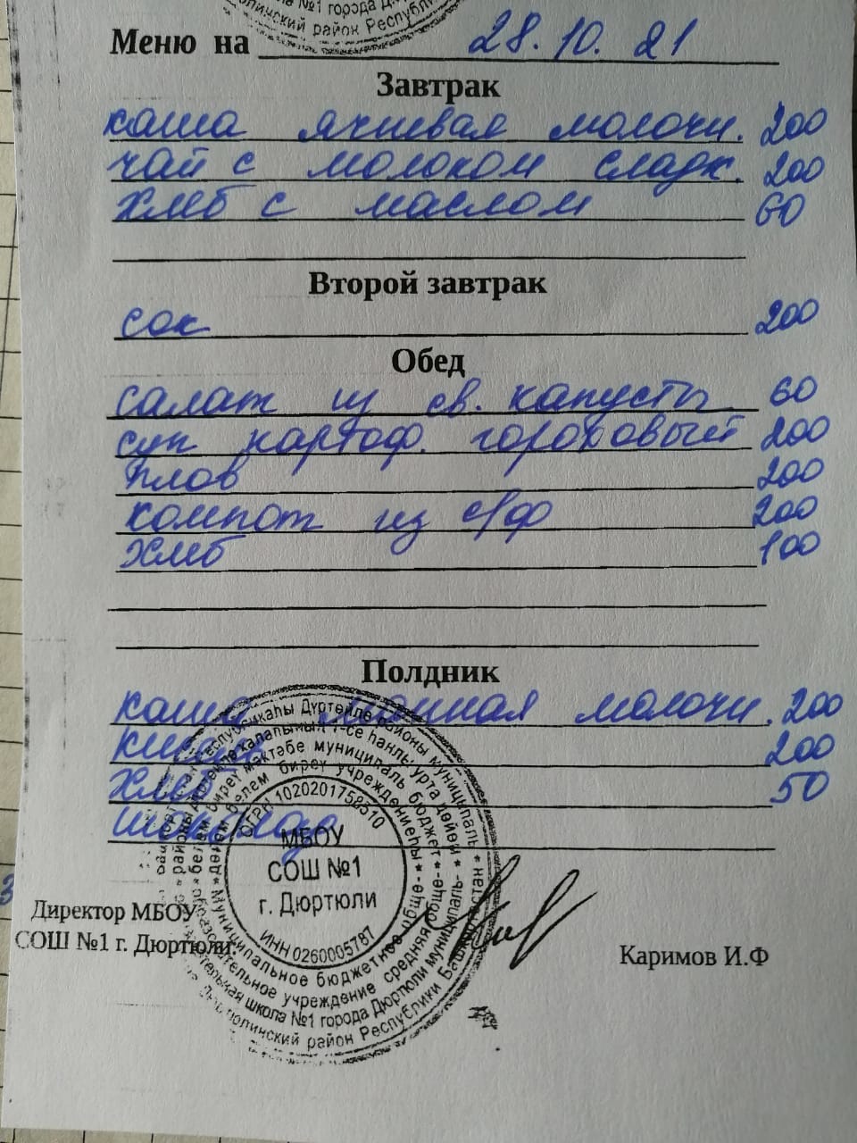 Меню на 28.10.2021