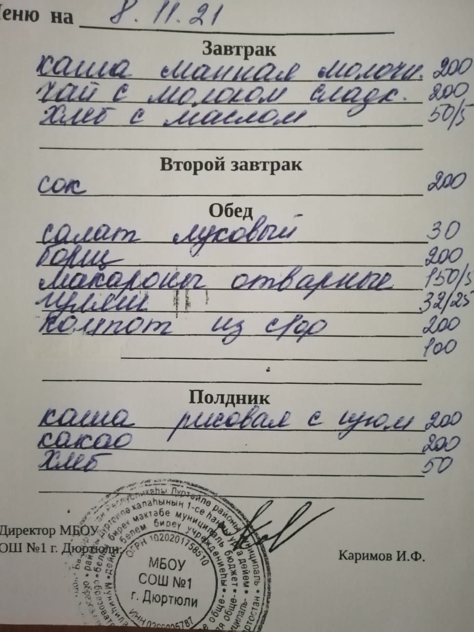 Меню на 08.11.2021