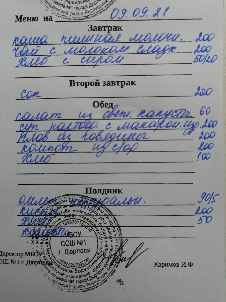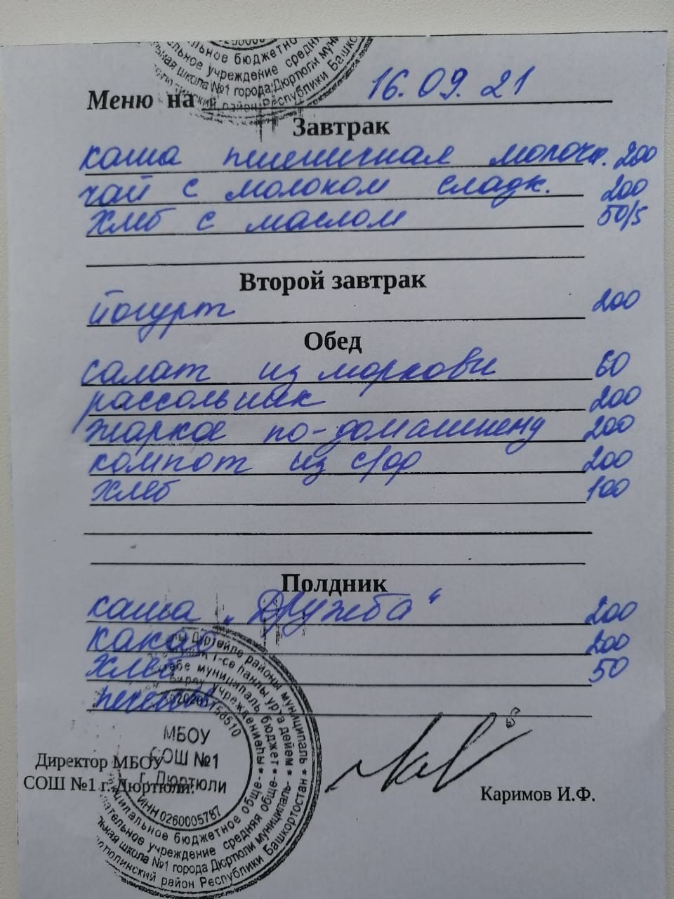 Меню на 16.09.2021