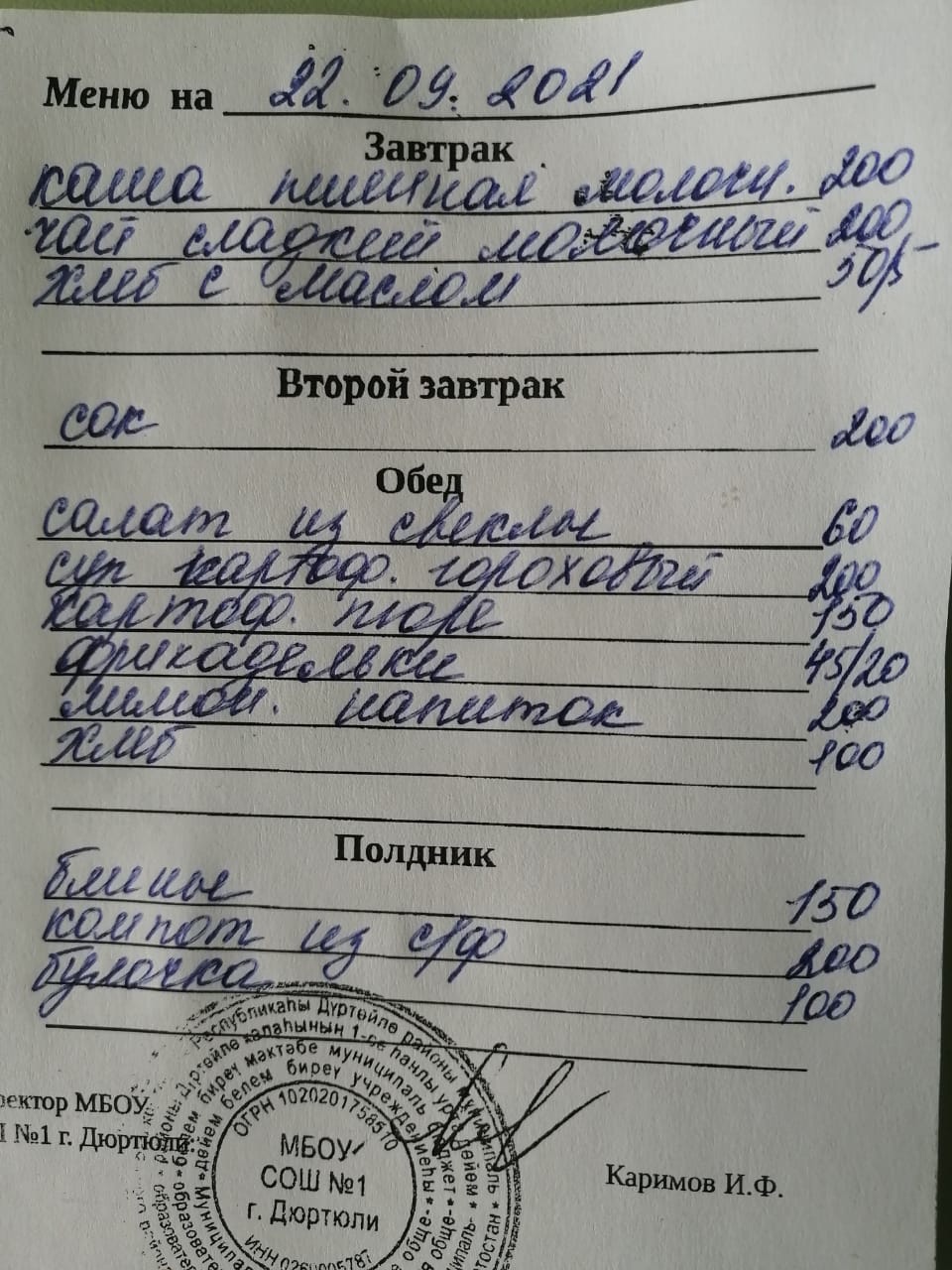 Меню на 22.09.2021
