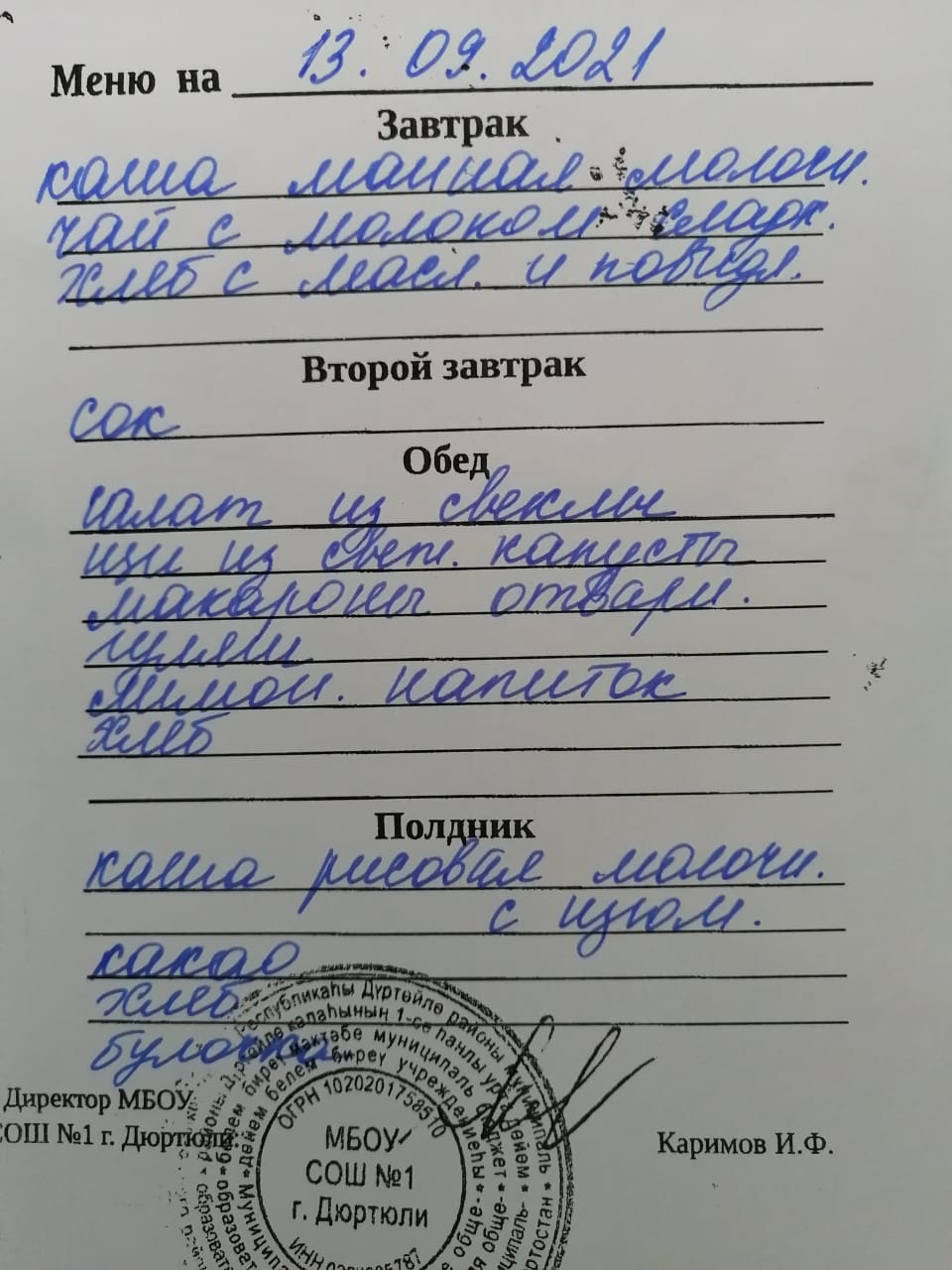 Меню на 13.09.2021