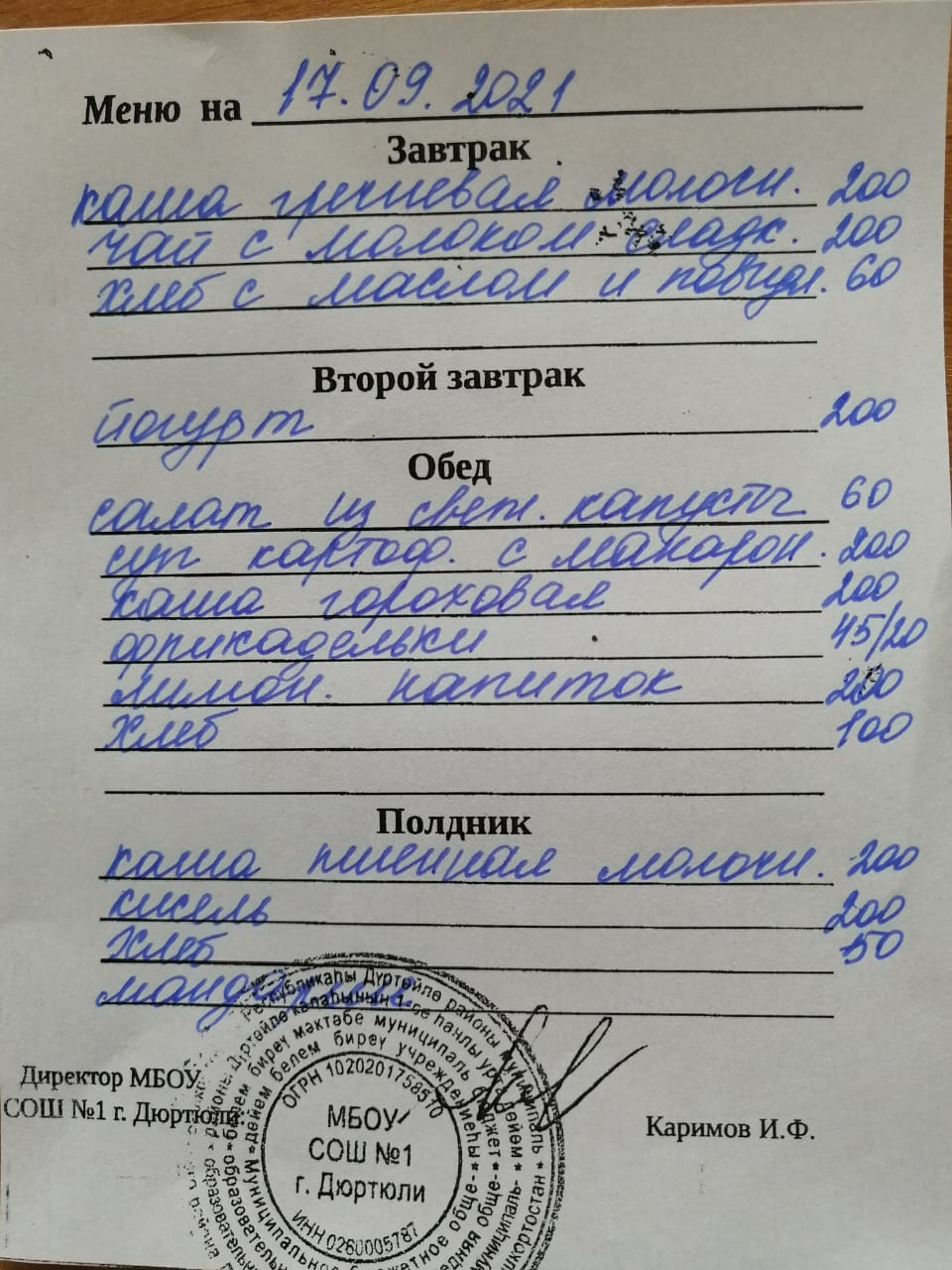 Меню на 17.09.2021