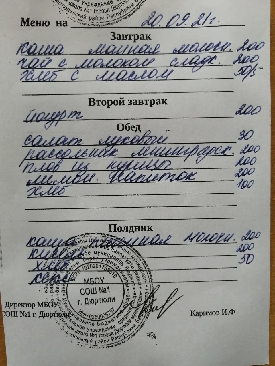 Меню на 20.09.2021