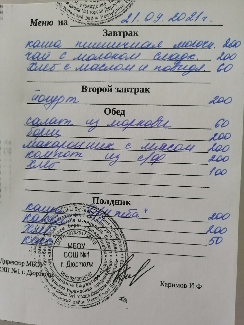 Меню на 21.09.2021