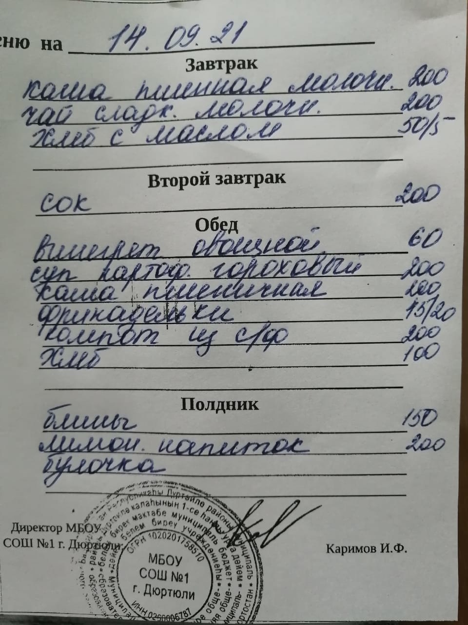 Меню на 14.09.2021