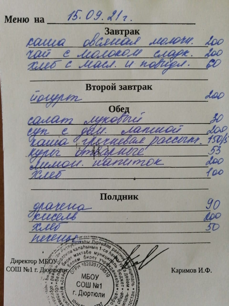 Меню на 15.09.2021