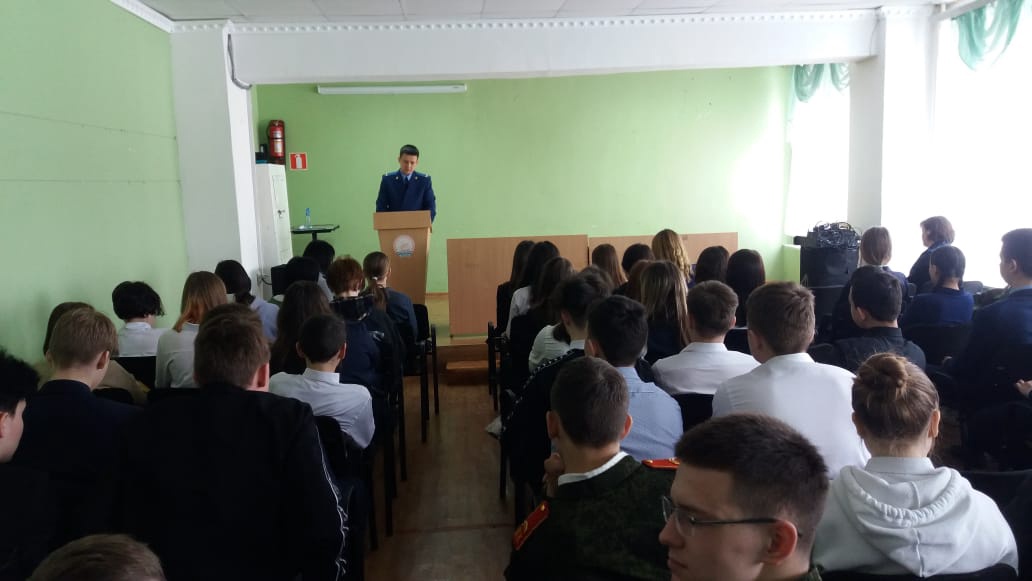 06.04.2022г. В 11-00 ч. Заместитель районного прокурора Насретдинов И. Р. Выступил в МБОУ СОШ 1 в актовом зале по вопросам правого просвещения в целях профилактики терроризма и экстремизма, правонарушений, наркоманий, и алкоголизма среди несовершеннолетних.