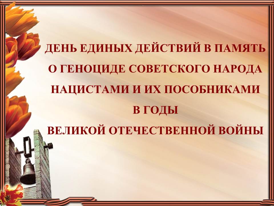 День единых действий, в память о геноциде советского народа нацистами и их пособниками в годы Великой Отечественной войны